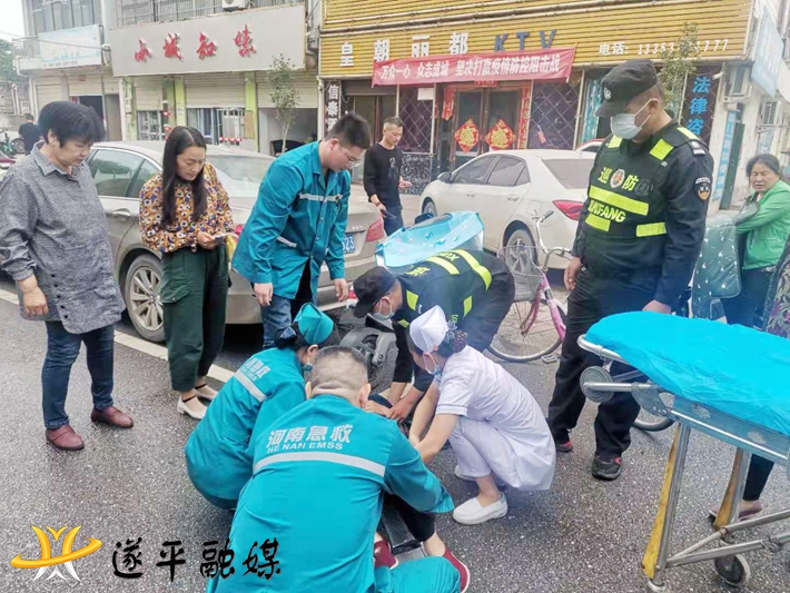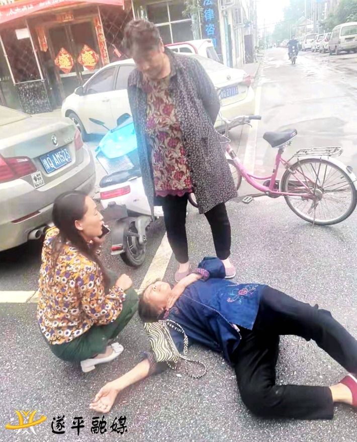 本网讯(通讯员:李运良)5月13日上午11点多钟,在遂平县国槐路西段皇朝丽都kTv门前十字路口西边,一名七十多岁的老太太与一名女子迎面相撞,因路面刚洒过水有些湿滑,老太太随即跌倒在地上。