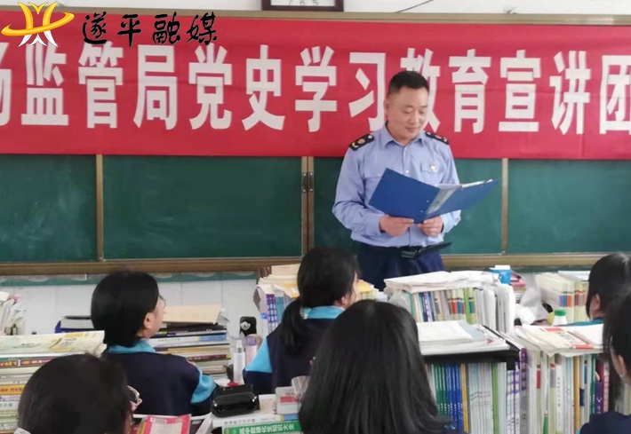 5月13日,县市场监督管理局学习教育办公室从系统内部选拔5名优秀青年干部作为党史学习教育宣讲员,以“学党史 感党恩 跟党走”为活动主题,以“学史明理、学史增信、学史崇德、学史力行”的目标要求,深入河南惠强新能源材料科技股份有限公司、遂平第二高级中学讲党史故事,宣传法律法规。用群众喜闻乐见的形式开展党史学习教育,推动党史故事入脑入心,激发群众、学生爱国爱党之情,从中汲取奋进力量。现场结合食品监管、餐饮规范、消费维权、特种设备安全等市场监管法律法规,与企业商户、广大人民群众详细讲解、宣传,规范了市场秩序、维护了公平竞争;与学生们面对面交流在乘坐电梯遇到故障时应注意的事项,求救的操作步骤,进一步提高广大学生的安全防范意识,预防减少安全事故的发生。