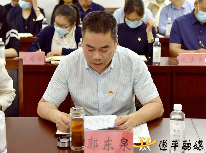 县委常委、县委宣传部部长、县委党史学习教育领导小组副组长、办公室主任郭东泉汇报了我县党史学习教育工作开展情况。