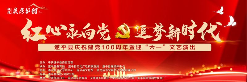 回顾党的光辉历程,弘扬党的优良传统,讴歌党的丰功伟绩。由中共遂平县委宣传部主办;遂平县教育局、遂平县文广旅局、遂平县融媒体中心承办;遂平县文化艺术中心、遂平县文化馆、泰宏文化传媒协办;遂平县城乡建设投资集团有限公司遂平分公司冠名的“庆祝建党100周年暨迎六一文艺汇演”活动,将于5月28日晚19:00在遂平县文化艺术中心一楼演播大厅开展。