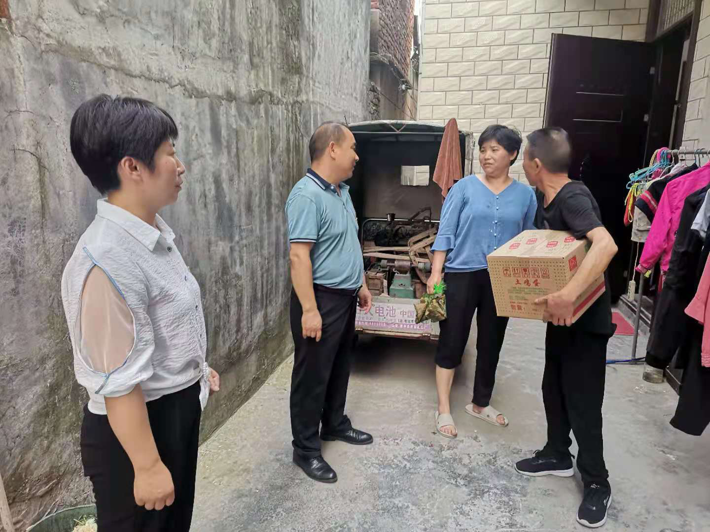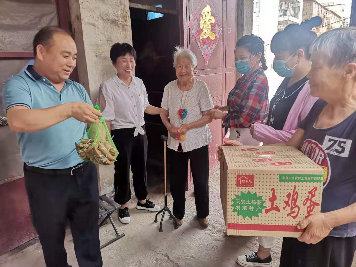 南海区党支部副书记魏颖颖带领两委干部又为本辖区的残疾人宋双喜和老党员伤残复转军人李根立送去热气腾腾的粽子和鸡蛋等过节礼物,并祝福他们身体健康,节日快乐,让其充分感受到党组织的关怀与温暖。