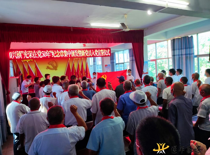 本网讯(通讯员:王子豪)为庆祝建党100周年,推动党史学习教育走深走实,进一步激励全体党员传承红色基因,忠诚履职尽责。6月21日,和兴镇在镇二楼大会议室隆重举行“光荣在党50年”纪念章颁发暨新入党党员入党宣誓仪式。仪式由镇长陈洁主持,镇机关全体同志、各村支部书记、党建员、50年以上党龄党员代表、新入党党员参加仪式。