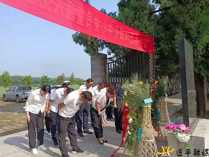 活动由缅怀革命先烈、传颂红色故事、重温入党誓词、传承革命精神四个部分组成。在烈士陵园内,大家向烈士敬献了花篮、鞠躬缅怀,表达了深深敬意和无限哀思。 入党积极分子熊秀峰诵读了112位革命烈士英勇奋战的英雄事迹。中心党组书记、主任石书珍带领全体党员面向鲜红的党旗重温入党誓词。