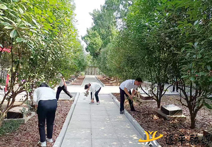 随后,大家又修剪整理烈士陵园树木,清扫墓碑。