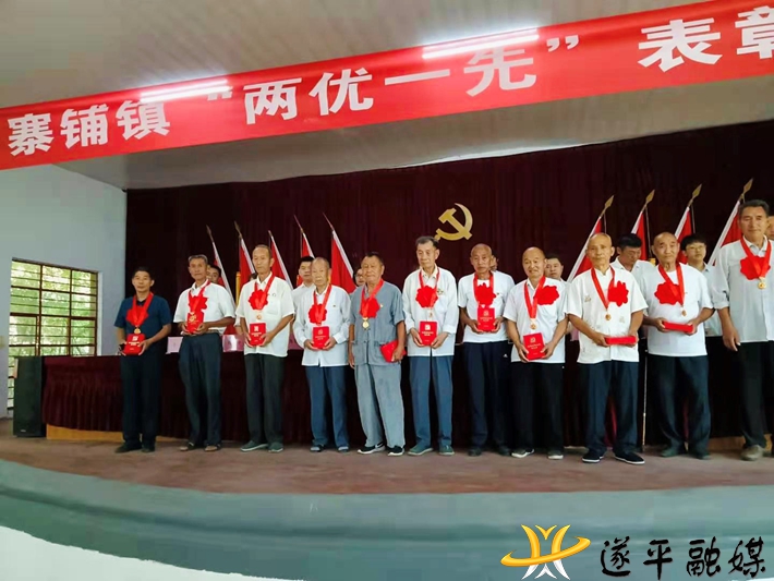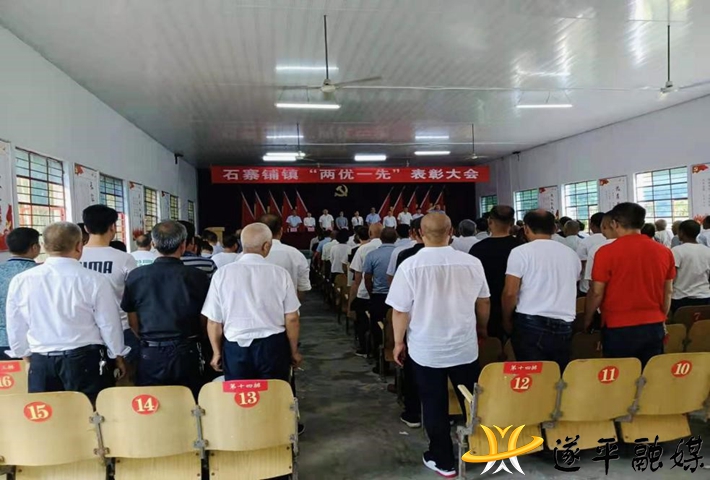 大会开始,全体起立,奏唱国歌。石寨铺镇党委副书记姚迪宣读了市委、县委“两优一先”表彰对象名单和镇党委“两优一先”表彰决定。全镇75名优秀共产党员、10名优秀党务工作者、8个先进基层党组织接受表彰。镇党委政府班子成员现场为受表彰对象代表进行颁奖,为12名“光荣在党50年”老党员代表颁发纪念章。