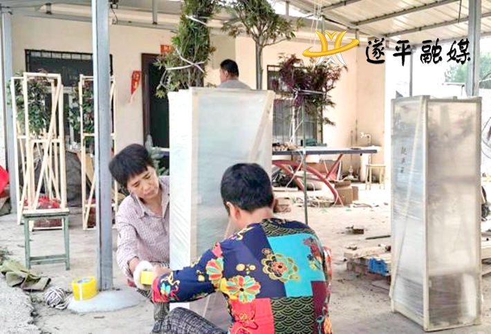 “这是我们苗圃的紫叶红栌,也是园艺场数量最多的品种,这个叫金叶水杉,它常年是金黄色的树冠,叶片在春夏秋三季都是黄色的,生长比较快......”在苗木装车现场,园艺场的直播者正在通过淘宝对外直播宣传苗木树种。何主任告诉我们,园艺场近几年开始慢慢摸索直播带货的方式,苗木价格1元至几千元不等,已销售到陕西、河北、北京、山东等地,大大提升了销量,下一步园艺场准备在快手直播,进一步打开销路。这个仅仅只有6个管理者的园艺场有效带动了周边农村剩余劳动力的就业,“合作社+贫困户+入股+分红”的经营模式,有力地推动了全村脱贫攻坚工作的开展。