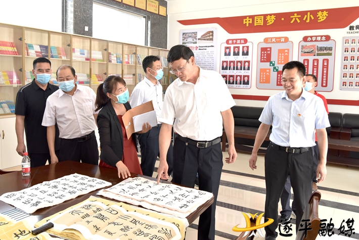 县长侯蕴、县委副书记尹永彪与学校教师交流。