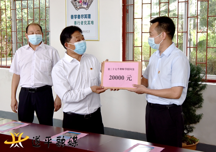 县长侯蕴、县委副书记尹永彪为学校送去慰问金。