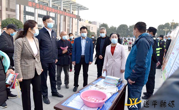 县委副书记尹永彪指出,做好新形势下平安建设工作责任重大,使命光荣。举行平安建设集中宣传月活动,旨在扎实推进全县“大走访大调研大排查大化解”工作,进一步巩固、提升、扩大、创新平安遂平建设宣传工作成果,着力提升人民群众安全感和满意度。县委、县政府将认真贯彻落实上级有关深化平安建设的决策部署,坚持把平安建设工作作为保障工程、民心工程、基础工程摆上重要位置,强化措施,狠抓落实,努力实现全县政治稳定、社会稳定、信访稳定、公共安全稳定、舆论环境稳定,不断推进平安遂平建设再上新台阶,开创新局面,持续为遂平县高质量跨越发展提供坚强保障。