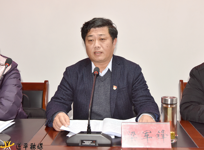 县委宣传部副部长、县融媒体中心主任梁军锋代表融媒体中心党总支作工作报告。