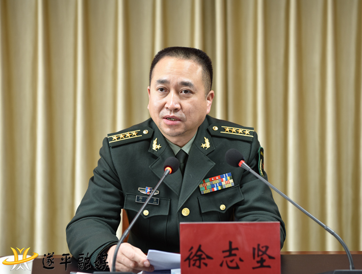 市委常委、驻马店军分区司令员徐志坚对我县党管武装工作给予充分肯定。徐志坚指出,人武部党委第一书记是党管武装工作的领头人,要强化“四个意识”,切实提高贯彻党管武装原则的政治站位;要增强军地合力,不断推动党管武装制度机制落实;要聚焦中心主业,坚决履行国防动员职能使命;要当好桥梁纽带,继续巩固军政军民团结基础,不断开创遂平党管武装工作新局面。