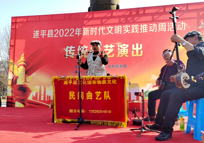 本网讯 为落实省、市文明办“河南省新时代文明实践推动周”活动要求,按照县文明办安排,遂平县文广旅局积极行动,3月3日下午,在县文化艺术中心广场举办了遂平县2022年新时代文明推动周传统曲艺演出活动。