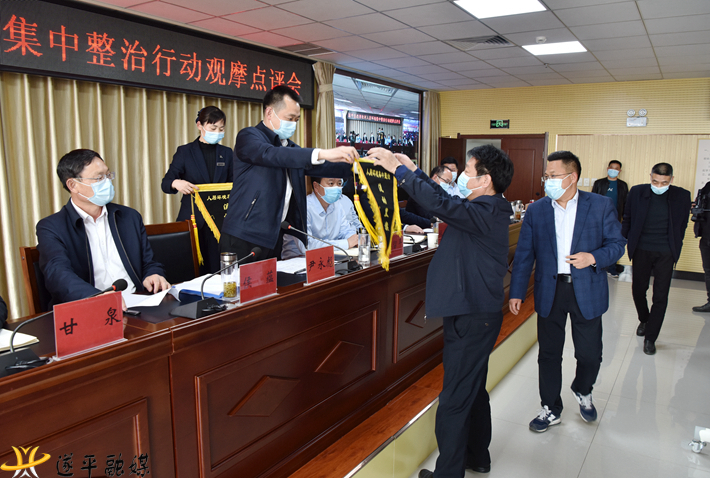 会上为先进乡镇(街道、管委会)——花庄镇、玉山镇、和兴镇、莲花湖街道颁发了奖牌,并向落后乡镇(街道、管委会)——石寨铺镇、吴房街道、沈寨镇、凤鸣谷风景区管委会颁发了黑旗。