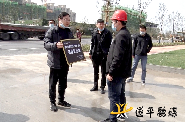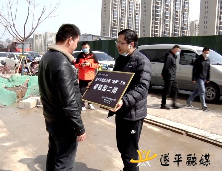 县政府办、督查局、城管局、住建局、攻坚办、控尘办等相关负责人先后来到在建施工工地现场,根据上月评定小组对工地现场的评定分值,对符合相关条件的“建业府”“置地上林公馆”进行绿牌悬挂,对不符合条件的“碧桂园二期”“品盛北龙湖”进行黑牌悬挂。