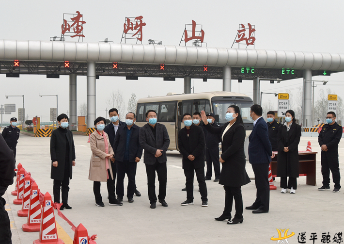 李振南一行先后来到京广澳高速驻马店北站、商南高速遂平北站、商南高速遂平西站、商南高速嵖岈山站、凤鸣谷防疫服务站实地查看高速出入卡口及市、县主要交通干线疫情防控工作。