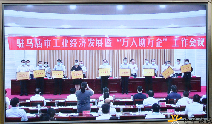 市委常委、副市长金冬江宣读表扬通报。会议对2021年度全市产业强市先进单位、“万人助万企”活动先进单位、纳税十强工业企业进行了颁奖。