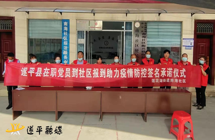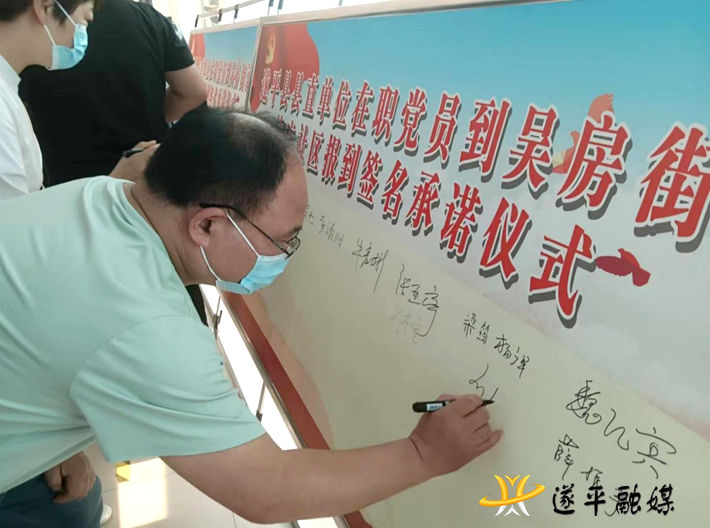 本网讯 5月20日下午,遂平县举行在职党员到社区报到签名承诺仪式。签名承诺仪式在县城区灈阳街道、莲花湖街道、吴房街道所辖的12个社区同时举行,全县县直单位3697名在职党员全体统一在居住地社区参加签名承诺仪式。