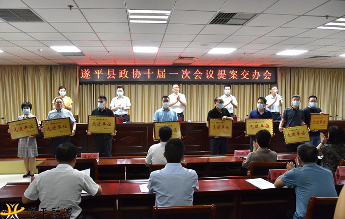 会上,县政协副主席徐刚宣读了《关于表彰2021年度提案办理先进单位表彰决定》,并为先进单位教育局、公安局、财政局、住建局、城管局、交通运输局、卫健体委、市场监管局颁奖;县政协副主席李玲华宣读通报了《2021年度提案办理情况及十届一次会议提案情况》;县委常委、县委办公室主任史光辉宣读了《遂平县人民政府办公室关于认真做好政协委员提案办理工作的通知》及宣读重点提案和领办领导。
