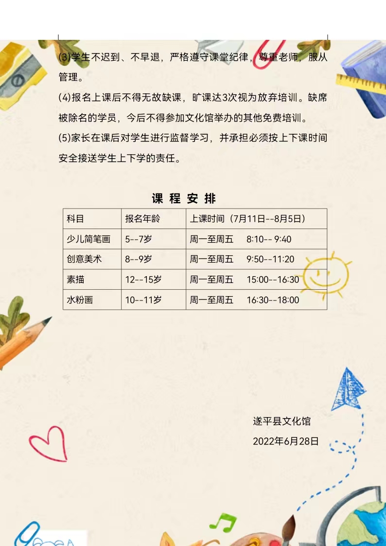 遂平县文化馆2022年暑期“少儿绘画公益课堂”报名通知
