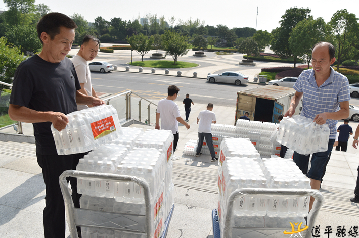 本网讯(记者:张磊 魏执政)7月8日上午,县商务局联合县电商协会为县融媒体中心捐赠100件、2400瓶今麦郎凉白开饮用水,为新闻记者送去了一份清凉。