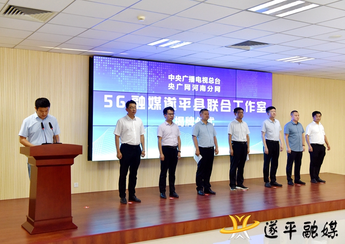 央广网河南分网负责人李永军、县委常委、县委办公室主任史光辉共同为“中央广播电视总台央广网河南分网5G融媒遂平县联合工作室”揭牌。