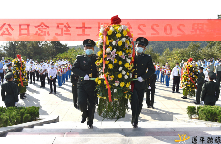 随着深情庄重的《献花曲》奏响,10名礼兵托起花篮,正步走向纪念碑,向革命烈士敬献花篮。县领导缓步走到纪念碑前,驻足瞻仰烈士墓碑,认真整理花篮缎带,缅怀革命先烈,表达追思之情。随后,与各界代表绕纪念碑缓步行进瞻仰,向无名烈士墓敬献鲜花。