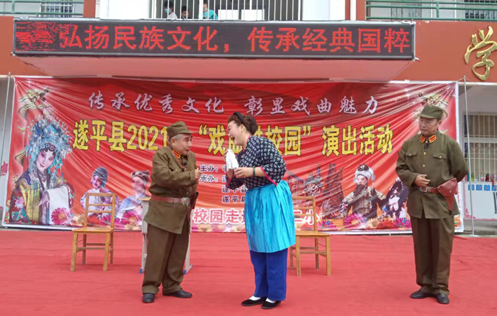此外,为了提升全校教师的书法书写水平,学校还特邀遂平县书法作家协会开展了“书法进校园活动”“戏曲进校园活动”、以及利用每年一度的校园文化节开展“经典诵读及师生才艺展示活动”。