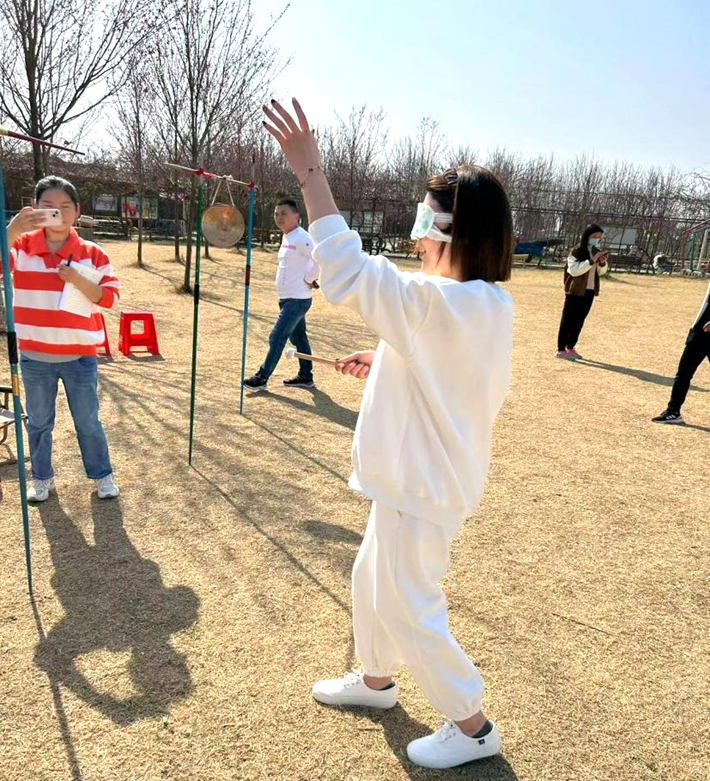 运动会设有“丢手绢、两人三足跑、瞎子敲锣”等多个项目。在团队赛中,大家齐心协力,互帮互助,场面激烈紧张,但又不失友爱与和谐。呐喊声、加油声,不绝于耳,热闹非凡。在个人项目比赛中,大家热情而又专注,尽情挥洒青春活力,享受运动的快乐,鼓掌声、喝彩声,此起彼伏,场面精彩异常。