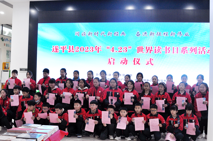 4月23日上午,我县举行以“阅读新时代新经典·奋进新征程新伟业”为主题的2023年“4·23”世界读书日系列活动启动仪式。县教育系统学生代表参加启动仪式。