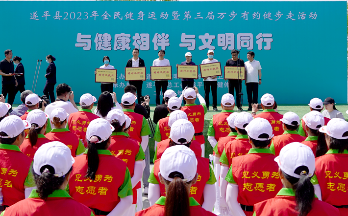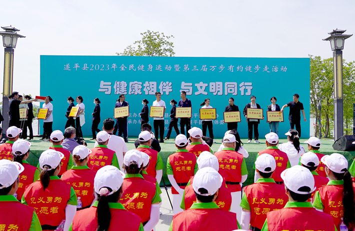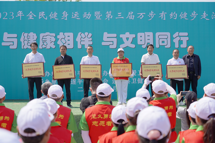 随着遂平县经济社会的不断发展,我县群众体育设施不断完善,全民健身活动蓬勃开展,广大干部职工参与体育健身的热情不断高涨,体育事业呈现出持续健康发展的良好姿态。全县健步走活动,是县委、县政府高度重视体育事业的又一重要体现。活动希望广大干部职工和社会团体以本次健步走活动作为新的起点,把推进我县全民健身活动作为一件大事来抓,切实加强体育基础设施建设,广泛开展群众体育活动,不断增强全县干部职工的健康素质,切实推动我县健康城市创建工作扎实开展。同时,也希望各级各部门和广大干部职工把本次健步走活动所体现出来的坚韧不拔、顽强拼搏、奋勇争先、团结协作的精神,带回工作中去,影响带动身边每一个人,团结一心、奋发图强、扎实工作,共同为我县经济社会高质量发展增光添彩。
