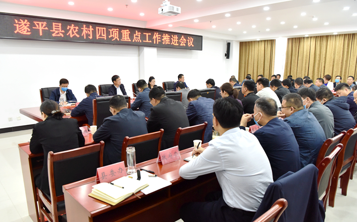 5月8日上午,遂平县农村四项重点工作推进会召开,县委书记侯蕴主持会议并讲话。县领导李振南、甘泉、郭帅、张强、高喜、冯浩、周倜、魏富亮出席会议。