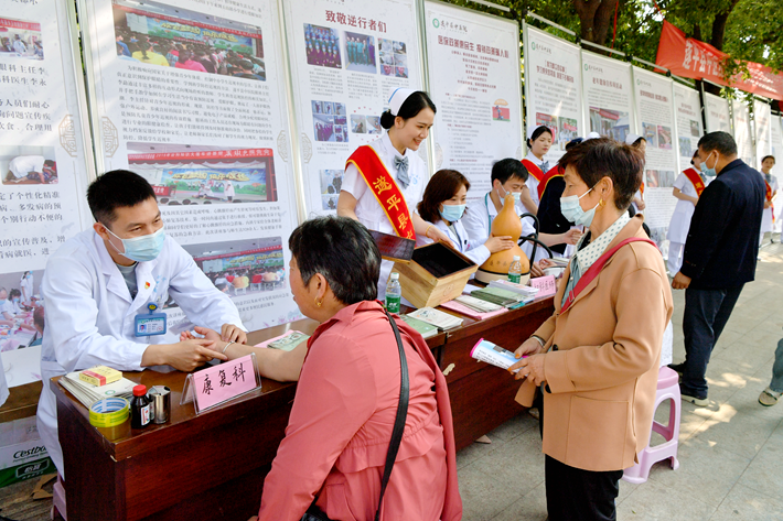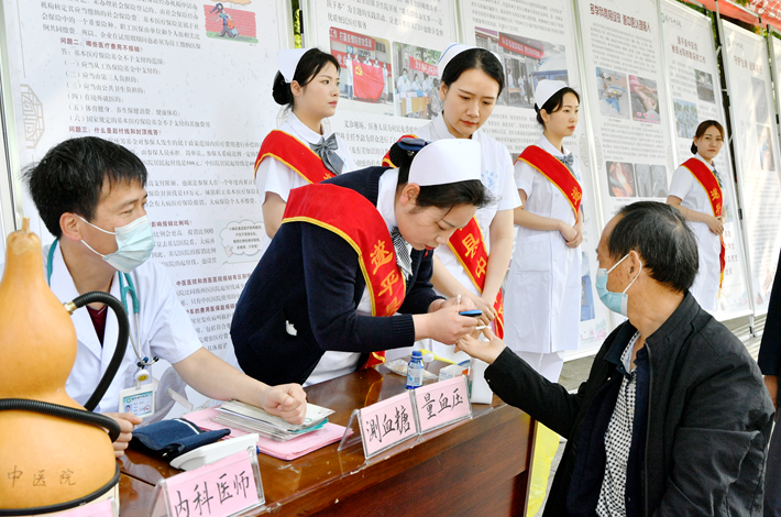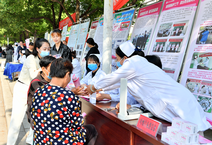 在活动现场,县第一人民医院、中医院、疾病预防控制中心等6家医院组织专家进行现场义诊,为群众量血压、测血糖,详细询问既往病史,提出针对性合理治疗建议,并发放健康教育宣传材料,进行健康知识宣讲。