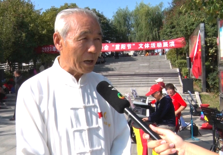吴彦民:今天咱县老年人体育协会举办了重阳节体育文化展演活动,我参加了活动,感到无比的荣幸,这是对老年人的关心和爱护,这个活动我们都要积极参加,我们再参加个十年、二十年,过好老年人的重阳节。