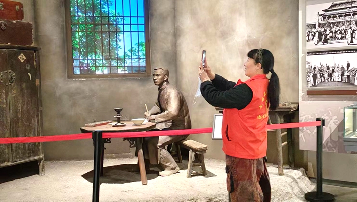 在杨靖宇将军纪念馆内,志愿者们在每个展厅的陈列展柜和图片前伫立,认真观看杨靖宇的英雄事迹,感受杨靖宇的革命精神。杨靖宇将军的一生是革命的一生,战斗的一生,辉煌的一生。他率领东北抗日联军在林海雪原的艰苦环境中与日寇血战,为全民抗战建立了具有战略意义的功绩。他以草根棉絮充饥,战斗到最后一刻的气概,在亿万人民心中树起不朽的丰碑。