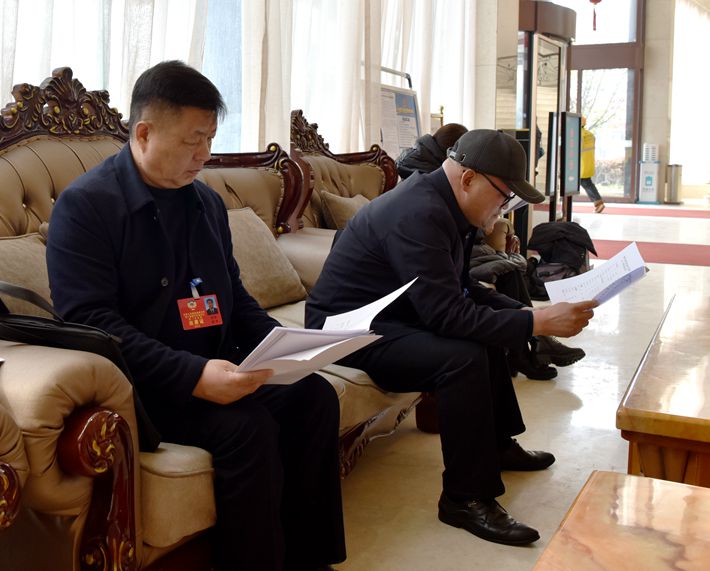 报到现场,前来报到的委员们在工作人员的引导下,签字登记,领取材料,各环节有条不紊,秩序井然,一些委员在领取会议材料后,就迫不及待地认真仔细阅读起来。