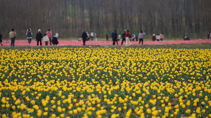 满园花开醉游人,春水初生待君来。据了解,郁金香的花期将从3月19日持续到4月底。今年的郁金香文化园在设计上全新打造了“一园两景”观赏区,给游客带来更加多彩的赏花体验,不但有色彩斑斓的郁金香,更有近300亩七彩油菜花田、儿童打卡游乐园等, 在种植设计上也进行了创新,推出“微地型”郁金香园,让游客全方位欣赏到“花中皇后”郁金香的丰姿。