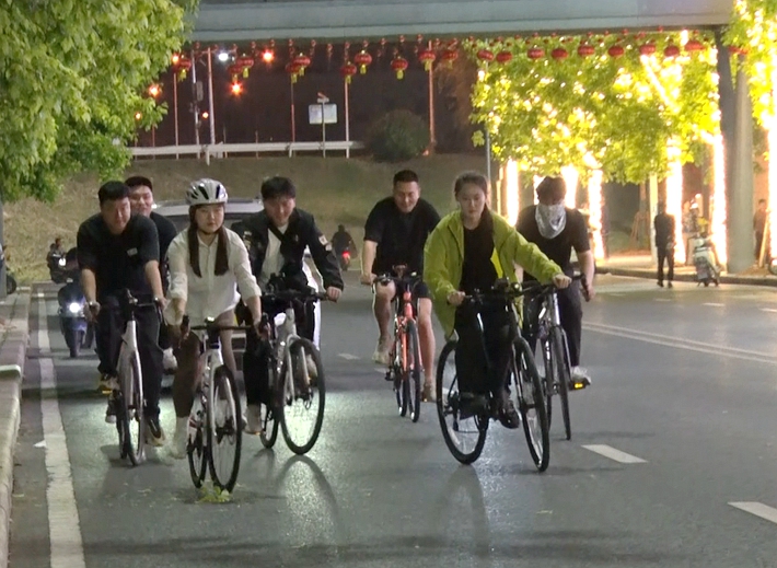 骑行爱好者廖女士:我们是平时下了班休闲骑,夜行呢也让我觉得很自由很惬意,可以边运动边欣赏遂平的夜景,释放工作的压力。