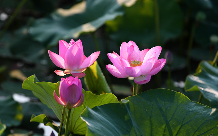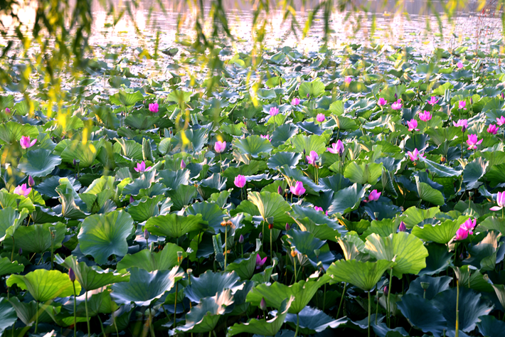 6月3日,遂平县玉湖公园的荷花进入盛花期,满池的莲叶青翠欲滴,一朵朵荷花袅袅婷婷,在碧波中摇曳生姿,令人心旷神怡。图为满池荷花娉婷玉立。