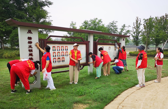在活动中,志愿者们各负其责,有的拿笤帚、有的拿抹布、有的拿夹子等工具,全身心投入到劳动中。她们相互配合、争先恐后、干劲十足,草丛里、道路旁、卫生死角处穿梭着身穿红马甲忙碌的身影。经过志愿者们两个小时的辛苦劳动,汝河公园焕然一新,她们辛勤的付出得到群众一致认可与好评,大家纷纷表示,城市清洁行动的开展是一件好事,会全力支持并积极参与其中,自觉践行文明健康、绿色环保的生活方式。