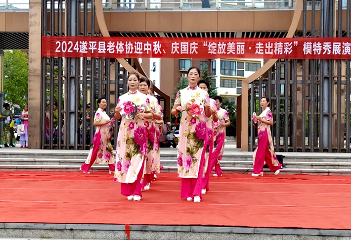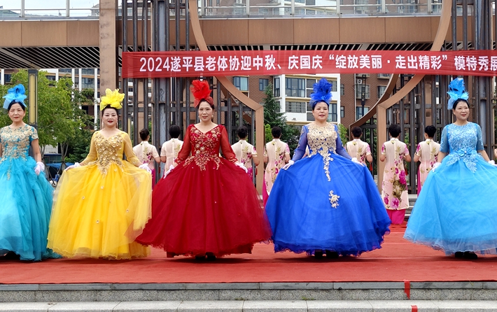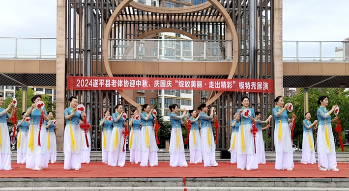 为贯彻落实党的二十届三中全会精神,庆祝中华人民共和国成立 75 周年,活跃中秋群众文化生活,9 月 12 日上午县老体协在玉湖公园文化广场举行模特秀展演活动。县老体协主席郑道洲出席活动。