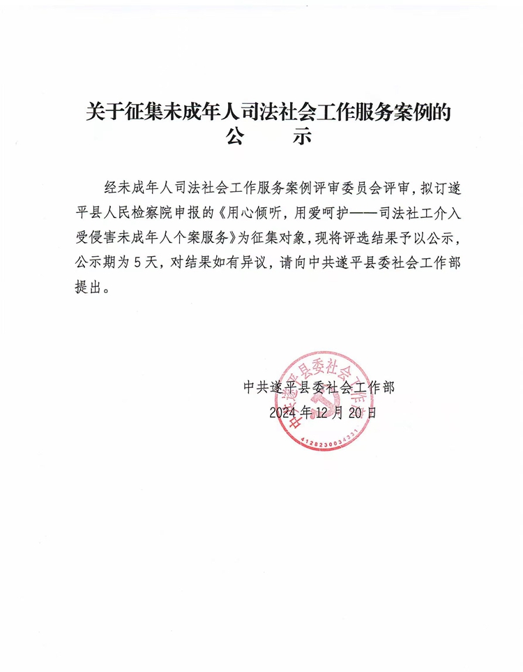 关于征集未成年人司法社会工作服务案例的公示