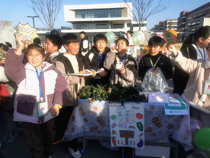 采摘结束后,同学们迅速将蔬菜整理、捆扎,在义卖摊位上整齐摆放。随着一声声清脆的吆喝,老师、家长和周边居民纷纷驻足选购,同学们热情地介绍蔬菜品种、种植过程,熟练地收款、找零,整个义卖现场忙而有序。