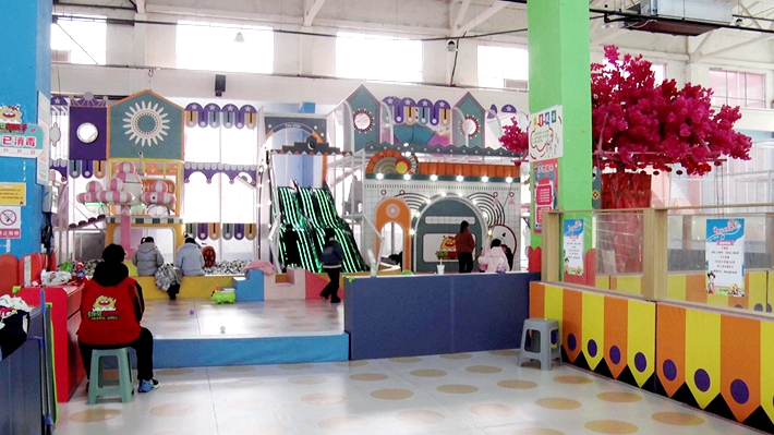 在室内区,色彩明快的海洋球池里,孩子们正互相追逐嬉戏,笑声回荡在整个场馆;一旁的滑梯上,小朋友们排着队,兴奋地等待着俯冲而下的瞬间;益智积木区里,几个孩子正专注地搭建着自己的“城堡”。场馆里空调全天开放,温暖舒适,地面铺着柔软的防护垫,角落处的安全员正随时关注着孩子们的动向。