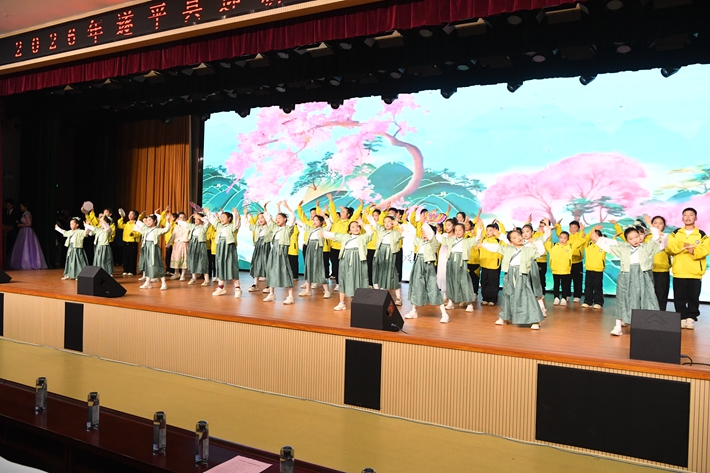 演出在遂平县第三中学带来的非洲鼓串烧《鼓羽摇香》中拉开序幕,激昂的鼓点瞬间点燃全场氛围。随后,各类精彩节目轮番登场:遂平广视小主播的《飞进新年的大门》《欢欢喜喜过大年》《马年说马》等节目,以童真视角传递新春祝福;遂平县第五小学、第六小学用歌声与朗诵礼赞传统文化;第一小学》、第八小学用歌舞展现了少年儿童的青春活力与时代风貌。