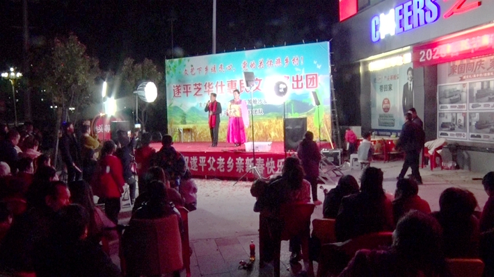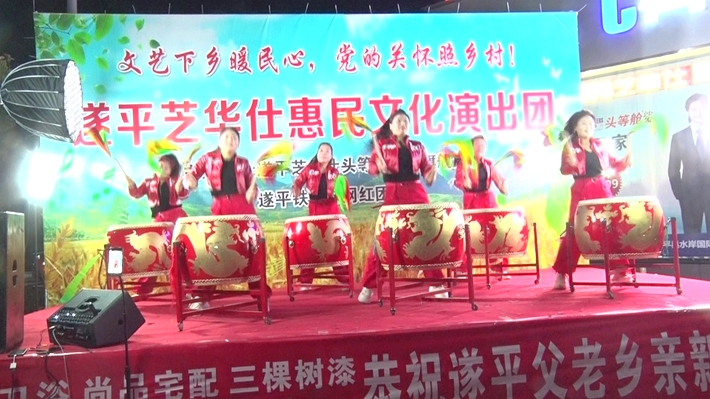 当晚7点,晚会在气势恢宏的威风锣鼓中拉开帷幕,现场座无虚席,气氛热烈。遂平芝华仕惠民文化演出团全员亮相,本地网红团队倾情助阵,专业主持人全程控场,歌曲、戏曲、小品、现代舞蹈等丰富多彩的节目轮番登场,接地气的表演、精彩的演绎赢得台下阵阵掌声与喝彩声,浓浓的年味与欢乐氛围弥漫全场。
