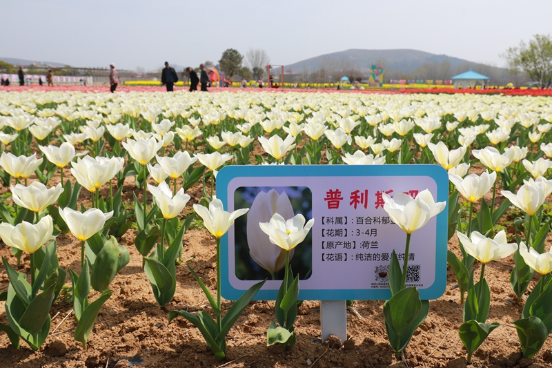 据郁金香主题花海工作人员介绍,该郁金香园占地1000多亩,是国内种植面积最大的专业郁金香文化园,素有"中原小荷兰""中国郁金香基地"之称。今年园区各种花卉种植数量多达400万株,有十字军、格鲁特、米兰达、水晶之星、街头俏妃、白色惊奇等40多个品种。