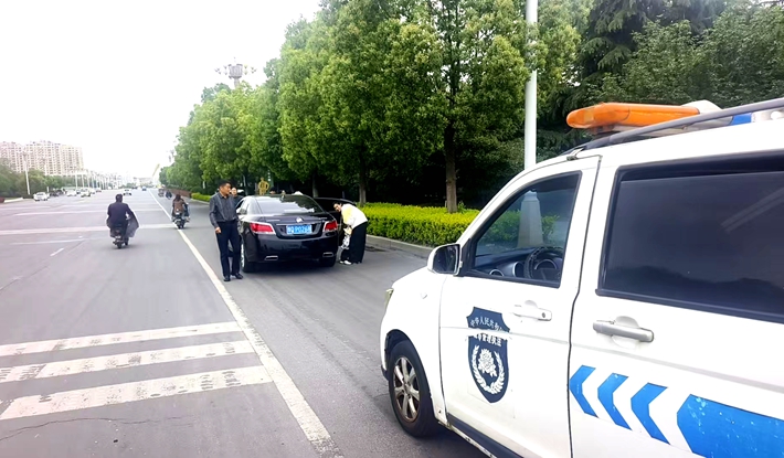 4月20日13时30分左右,遂平县灈阳大道与和幸路交叉口北500米施庄社区西门口突发一起交通事故,危急时刻,县城管局三大队一中队工作人员魏鸿飞、孔勇正驾车巡逻至此。发现事故情况后,两人第一时间赶赴现场,迅速开展秩序维护工作。