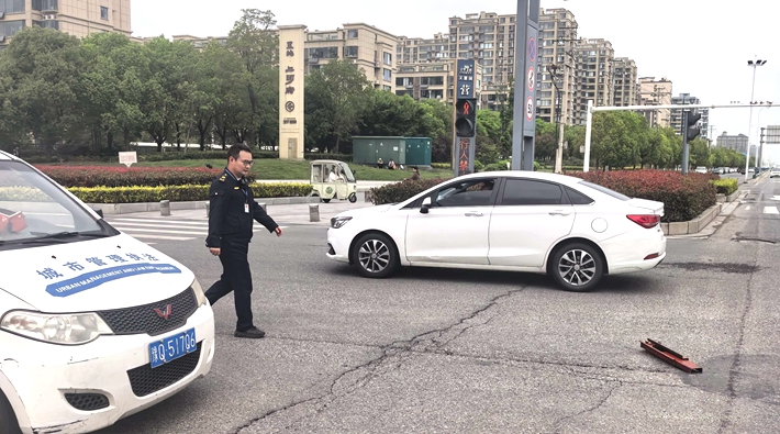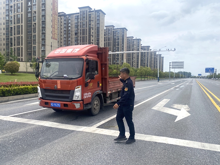 4月22日11时17分左右,遂平县和幸路与驿城大道交叉口红绿灯下,一辆自北向南行驶通过红绿灯的货车,货车突发部件脱落,货车挡板重重砸落在道路中央,严重影响行车安全。危急关头,遂平县城管局三大队五中队工作人员孙畅、陈帅、魏俊峰正驾车巡逻至此。发现事故情况后,快速响应,高效处置,仅用数分钟便恢复道路正常通行,以扎实行动守护了群众的出行安全。