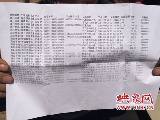 上图:村民田红星向记者提供了五保老人田保兴五保金支取的银行凭证