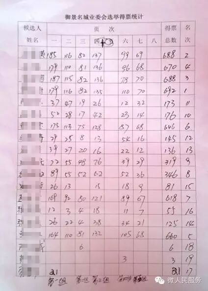 最后由主持人公布选举结果,顺利产生9名业委会代表: